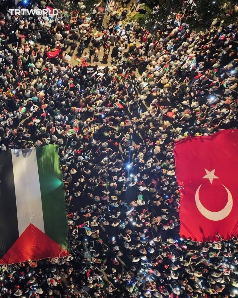 DID Press: Thousands of people took to the streets of Istanbul last night in a large-scale rally to voice solidarity with the people of Gaza. Demonstrators denounced what they described as a “war of starvation and destruction” waged by occupying forces against Gaza population.