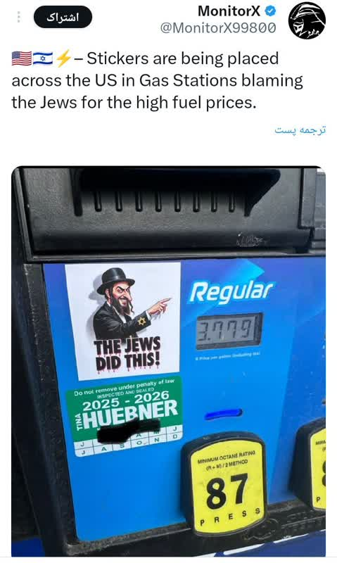 DID Press: Reports indicate that some US fuel tanks have been marked with stickers blaming Israel for rising gas prices. The stickers feature messages pointing to the link between Washington’s policies in the Middle East and domestic economic pressures.